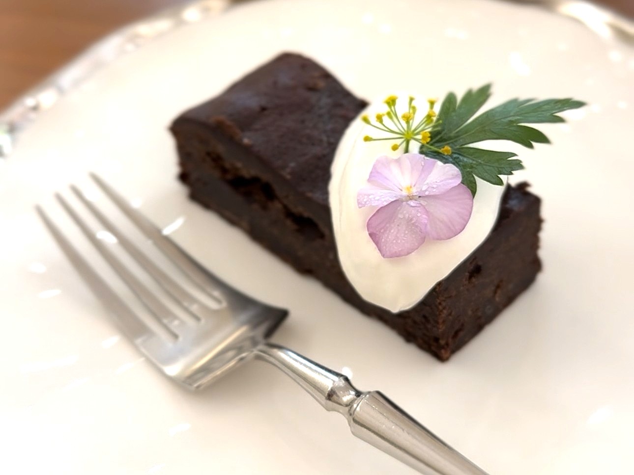 我們這天點了手作布朗尼和瑪德蓮,搭配的是像雲朵般輕盈柔滑的鮮奶油,再點綴上幾朵可食用小花,美得讓人捨不得動叉子。甜點不走厚重路線,口感溫柔、香氣淡雅,在嘴裡慢慢化開。再配上一杯手沖或義式咖啡,就是再簡單不過卻最能療癒身心的組合。